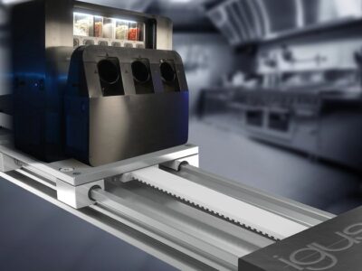 A cozinha robótica da Cook-e, uma empresa francesa, prepara pratos frescos e saudáveis sem ajuda humana e tem como objetivo ajudar os donos de restaurantes da pressão associada à escassez de trabalhadores qualificados. Para permitir que o robô opere mesmo em restaurantes com pouco espaço, os desenvolvedores utilizam eixos de correia dentada compactos e higiênicos da igus.